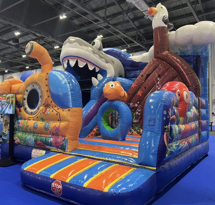 This has an amazing 3D artwork with underwater scenes and even a shark popping out the front wall. Get jumping with the Under The Sea Kingdom, this inflatable is bigger than a traditional bounce and slide with a bigger slide and its super slippery and super fun.