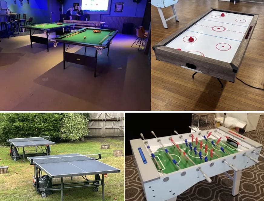 Hire the complete Sports Tables Package in Essex, Suffolk, London, Kent and Cambridge. Ideal for corporate days, private parties, school events and community festivals. This ready-to-play bundle keeps guests entertained. Quick setup. Pro equipment. Reliable service. Nationwide support available for larger events.