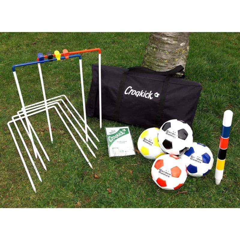 Croqkick Is like the classic game Croquet but with a bit of a twist, instead you will use footballs. This is great for people that are into football. it can be set up like the croquet or can be used for passing arcs that is good for training.