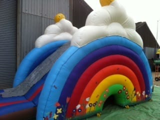Our Rainbow Slide is ideal for back gardens and halls. With a hidden Secret Cave and a slide each side it is ideal for children up to 12.