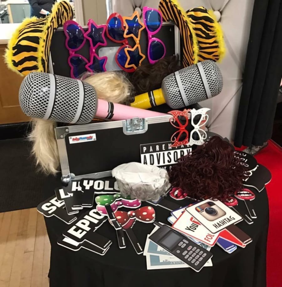 includes a photo booth fun props box for some silly pictures