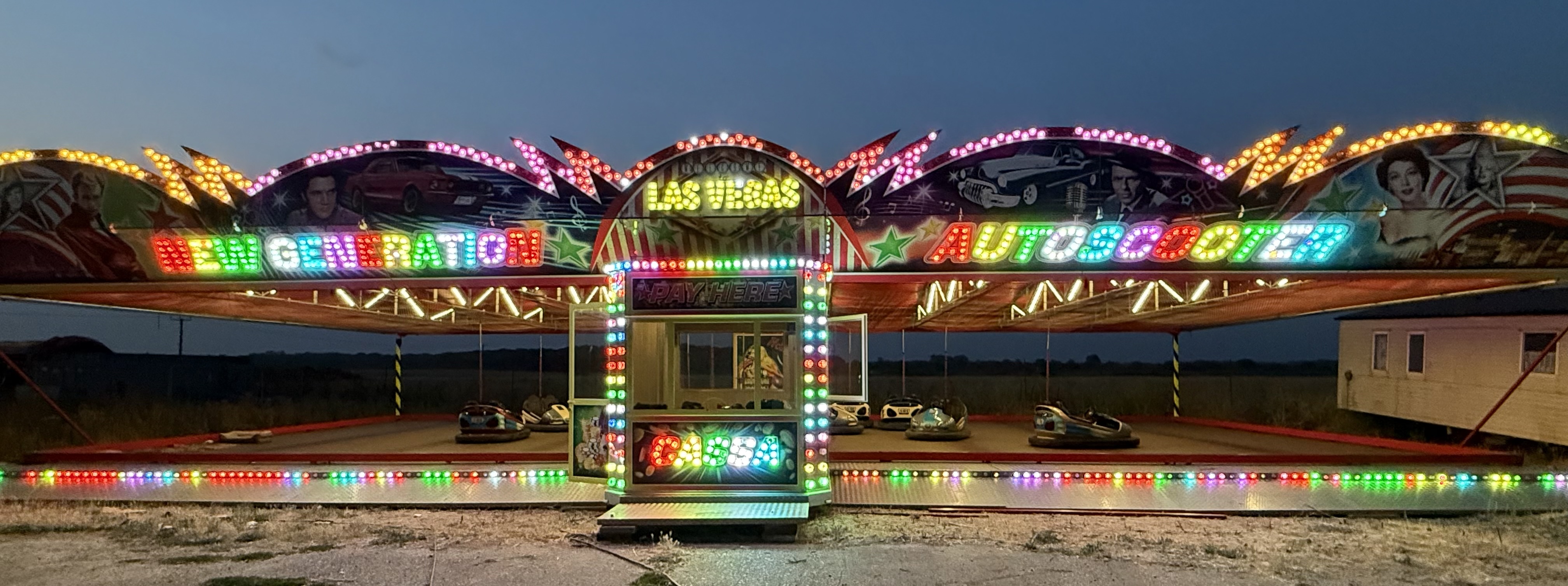Hire a premium Dodgems funfair ride for family fun, corporate events, fundays and company fun days. Our Dodgems Hire offers a Las Vegas themed experience with bright lights, pumping sound and professional operation. Available as a Dodgems fairground ride or dodgems funfair ride for events across the UK.