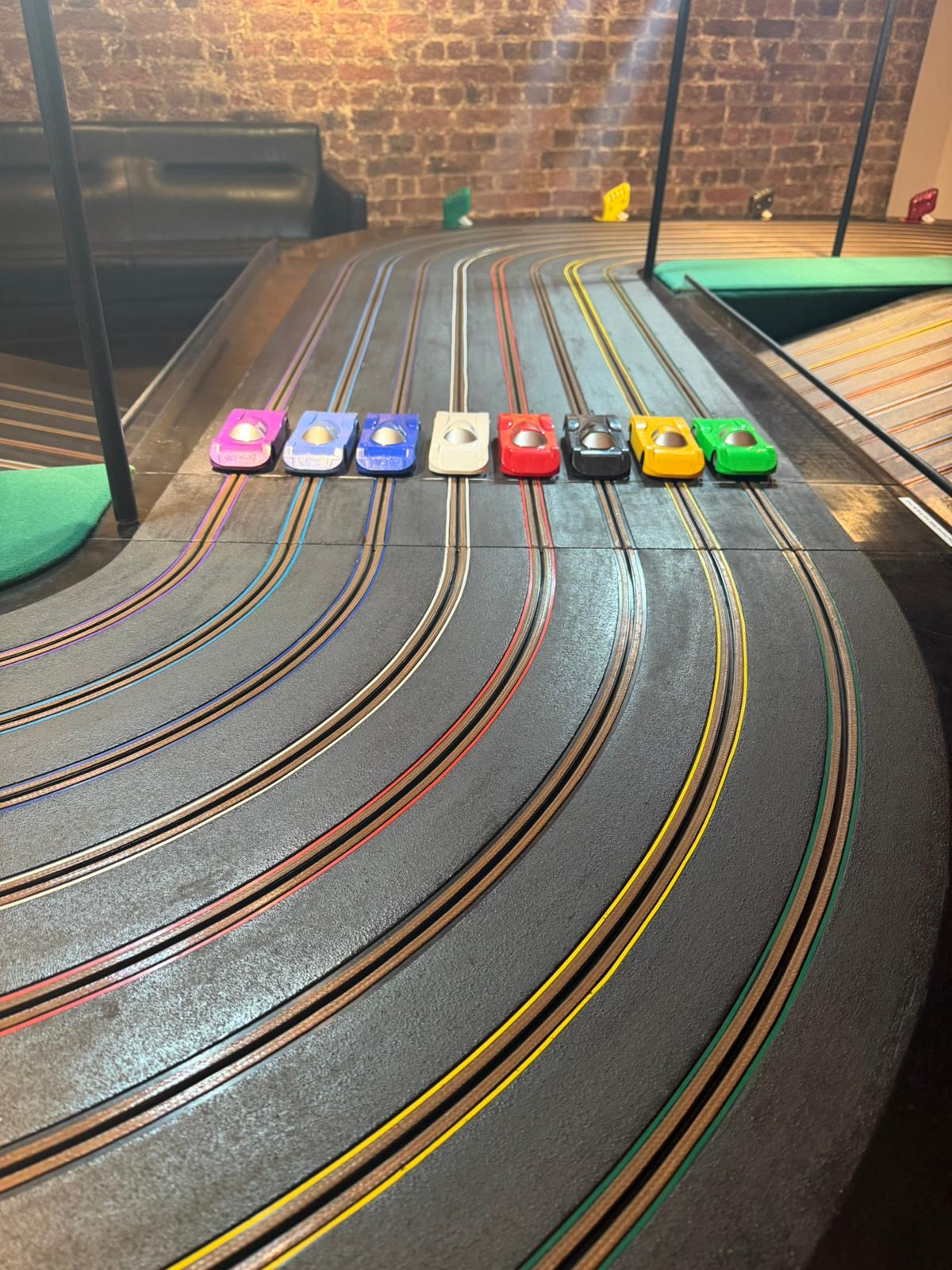 - Full 8 lane Scalextrics track for simultaneous racing. 🏎️